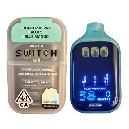 Blinker Berry, Pluto, and Blue Mango are arranged into three separate chambers inside the Boutiq V5. This layout allows quick selection while keeping each label clearly defined.